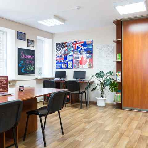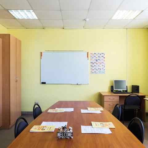 Процесс обучения проходит в светлом просторном помещении, оборудованном современными компьютерами и магнитной доской. Удобное расположение столов позволяет каждому ученику хорошо видеть и слышать преподавателя, а также общаться с другими слушателями курса. Стены кабинетов украшены тематическими плакатами, картинами и оригинальными часами, есть много полезной литературы как для взрослых учеников, так и для детей. На занятиях царит ненавязчивая дружеская атмосфера, которая располагает к обучению и быстрому усвоению полученных знаний.